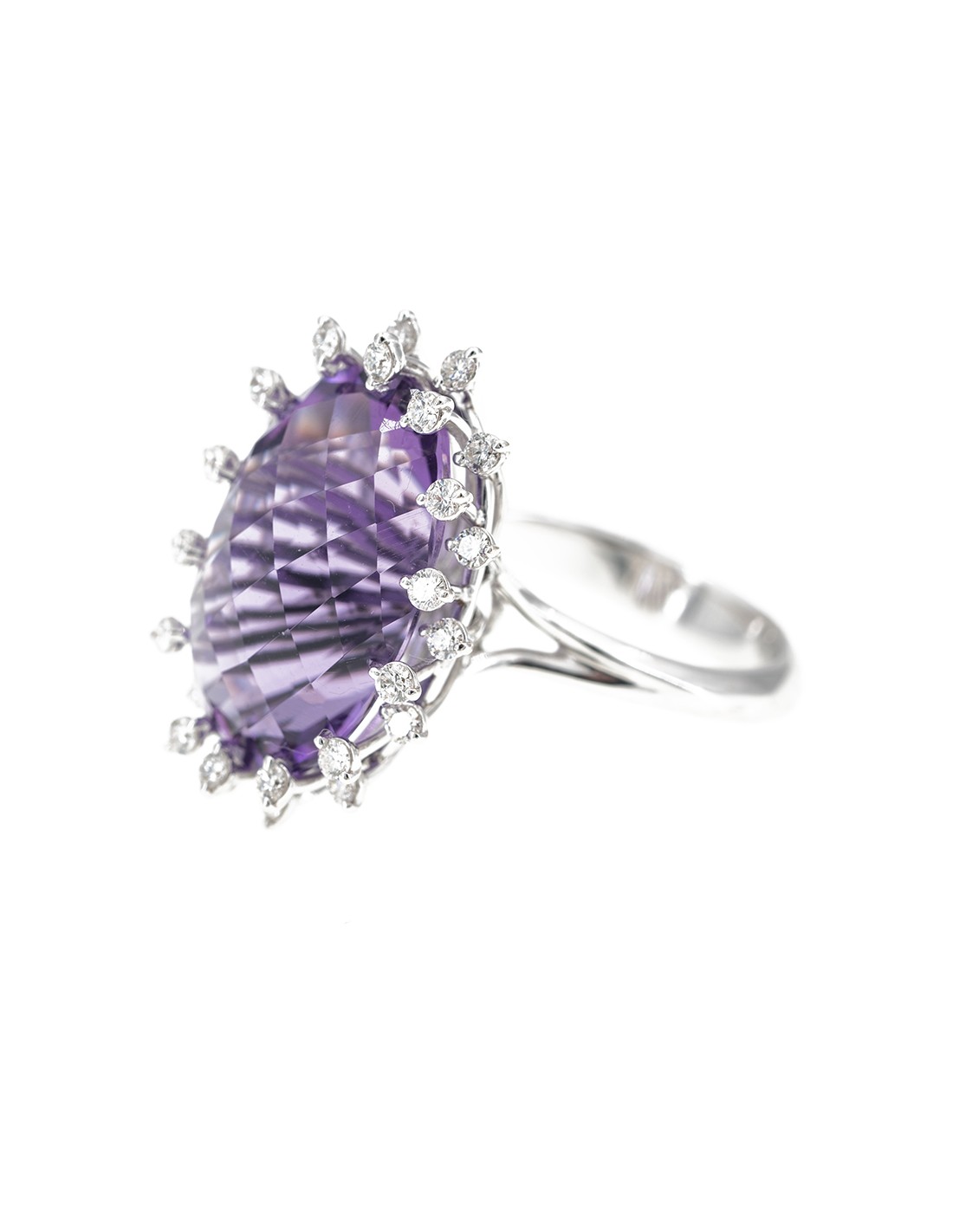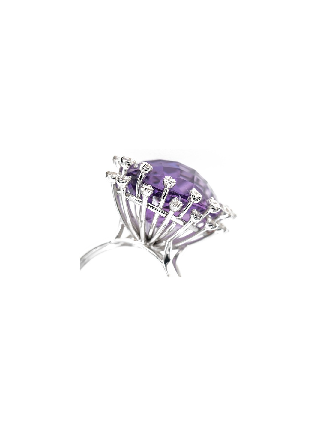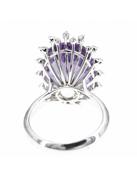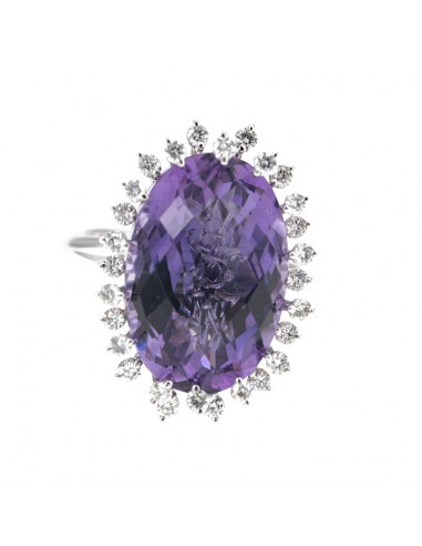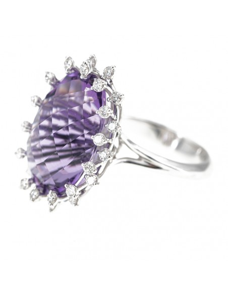 Anello rwalizzato in oro bianco con diamanti taglio brillante ed ametista d. ct 0,56