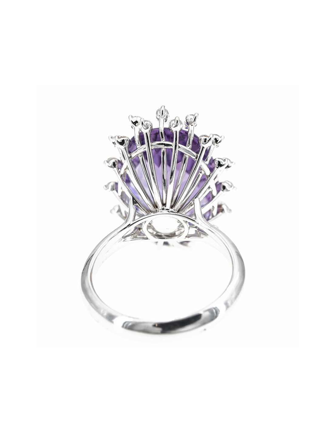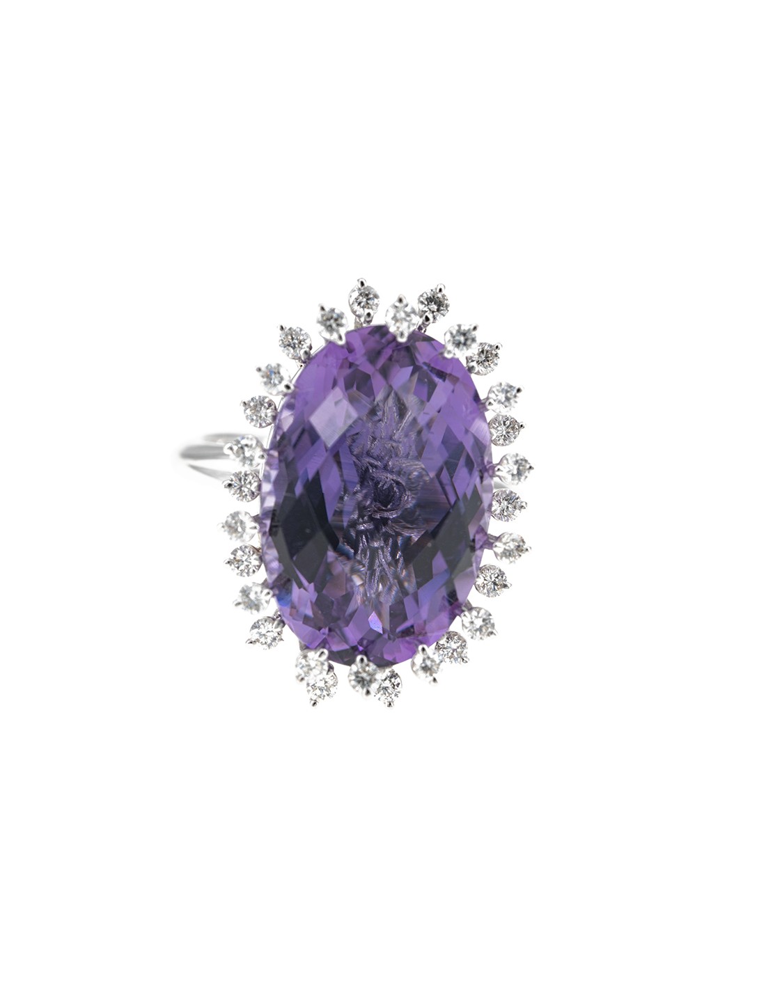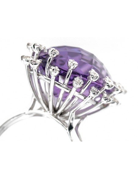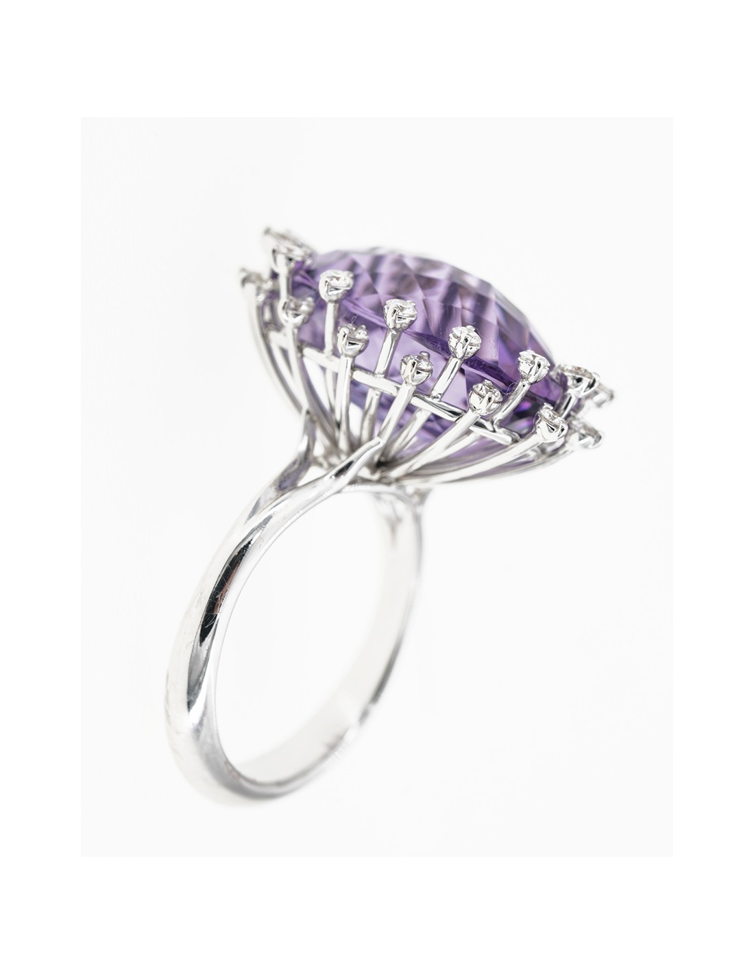 Anello rwalizzato in oro bianco con diamanti taglio brillante ed ametista d. ct 0,56