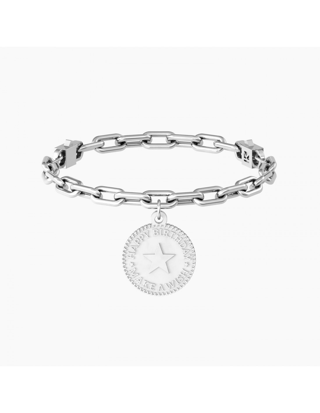 Con l'augurio che tutti i tuoi sogni si possano realizzareÉ Tanti auguri di buon compleanno a te che sei speciale! Bracciale in acciaio con catena a maglie ovali "comfort fit" e ciondolo lucido a forma di moneta.