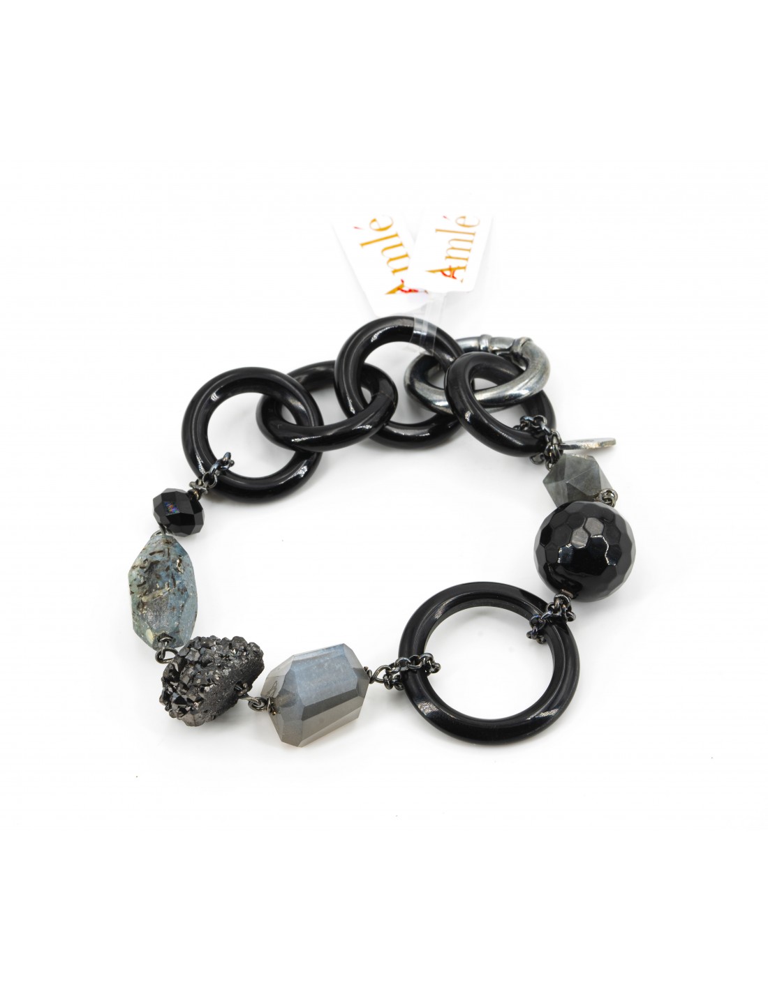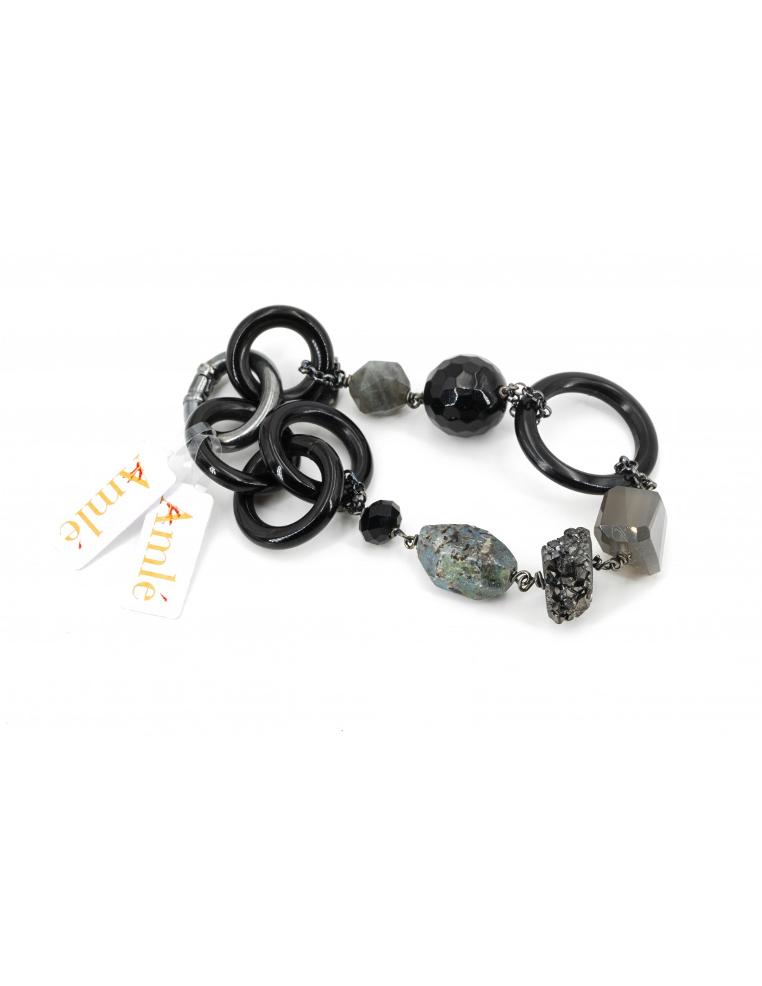 Bracciale Amlè con Pietre Dure Naturali e anelli in Corno Nero