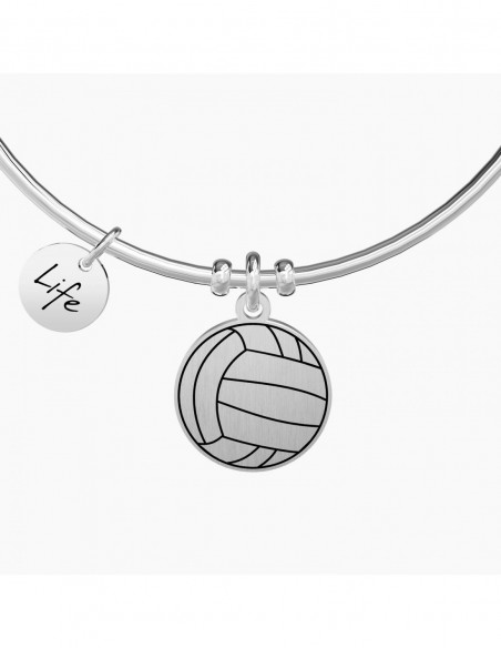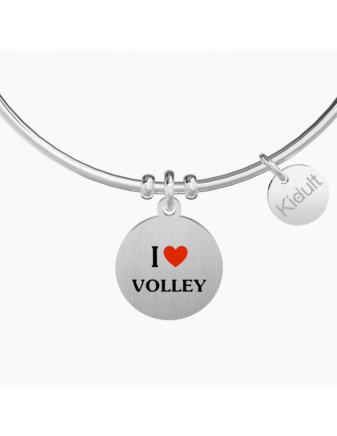 Passione, spettacolo, gioco di squadra, la voglia di saltare sempre pi in alto. I love Volley! Bangle in acciaio con ciondolo satinato tondo.