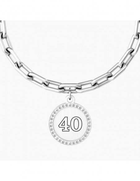 Buon compleanno! Ti auguro il meglio perchŽ "il meglio deve ancora venire"! Bracciale in acciaio con catena a maglie ovali "comfort fit" e ciondolo satinato tondo con rifinitura in cristalli.