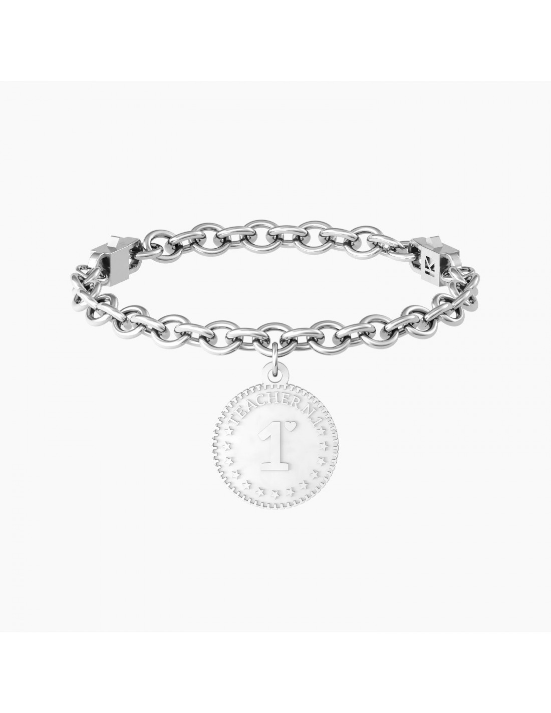 A te che sei l'insegnante pi brava, pi vera e sincera. Quella che tutti vorrebbero avereÉ Sei la numero uno! Bracciale in acciaio con catena rol "comfort fit" e ciondolo lucido a forma di moneta.