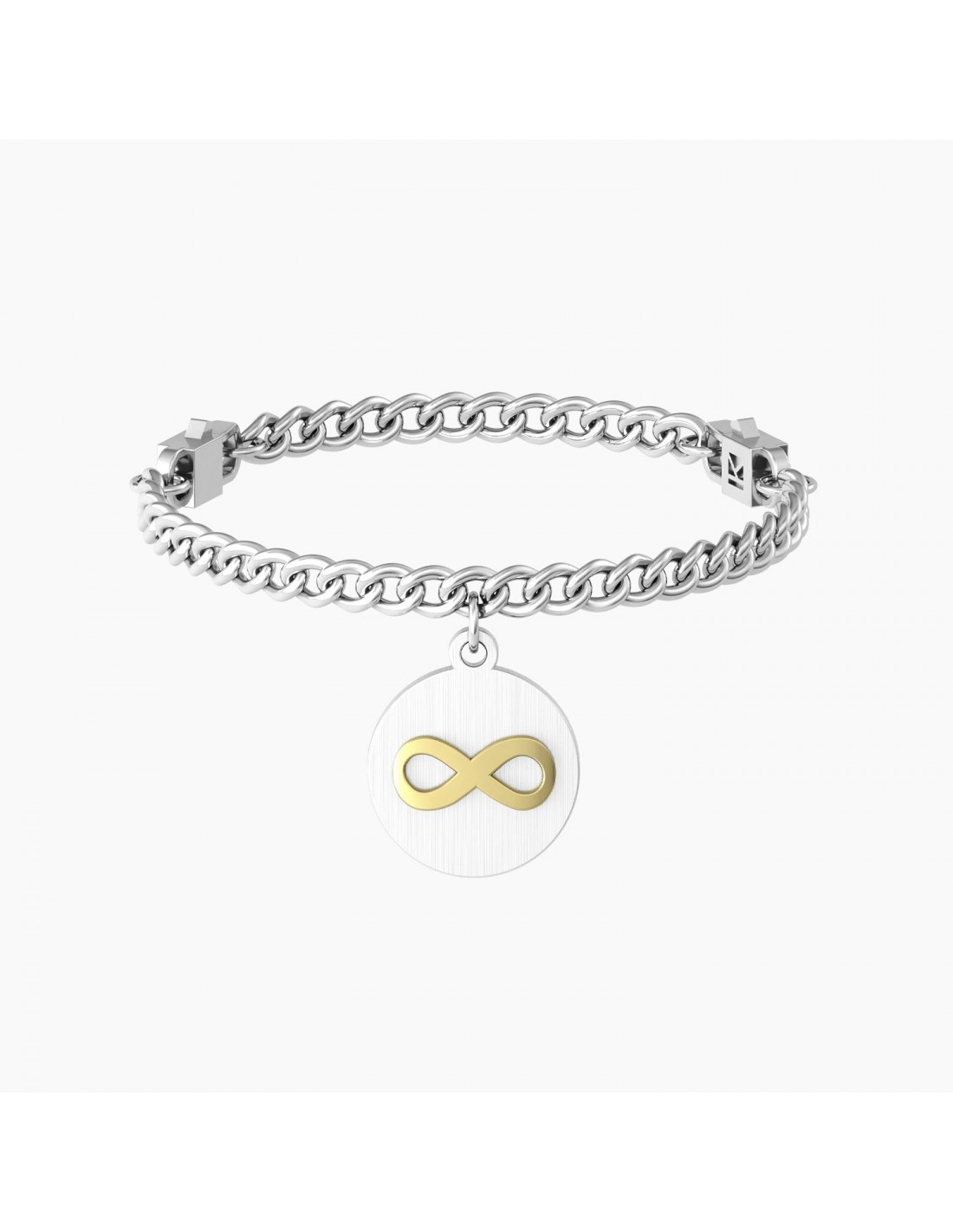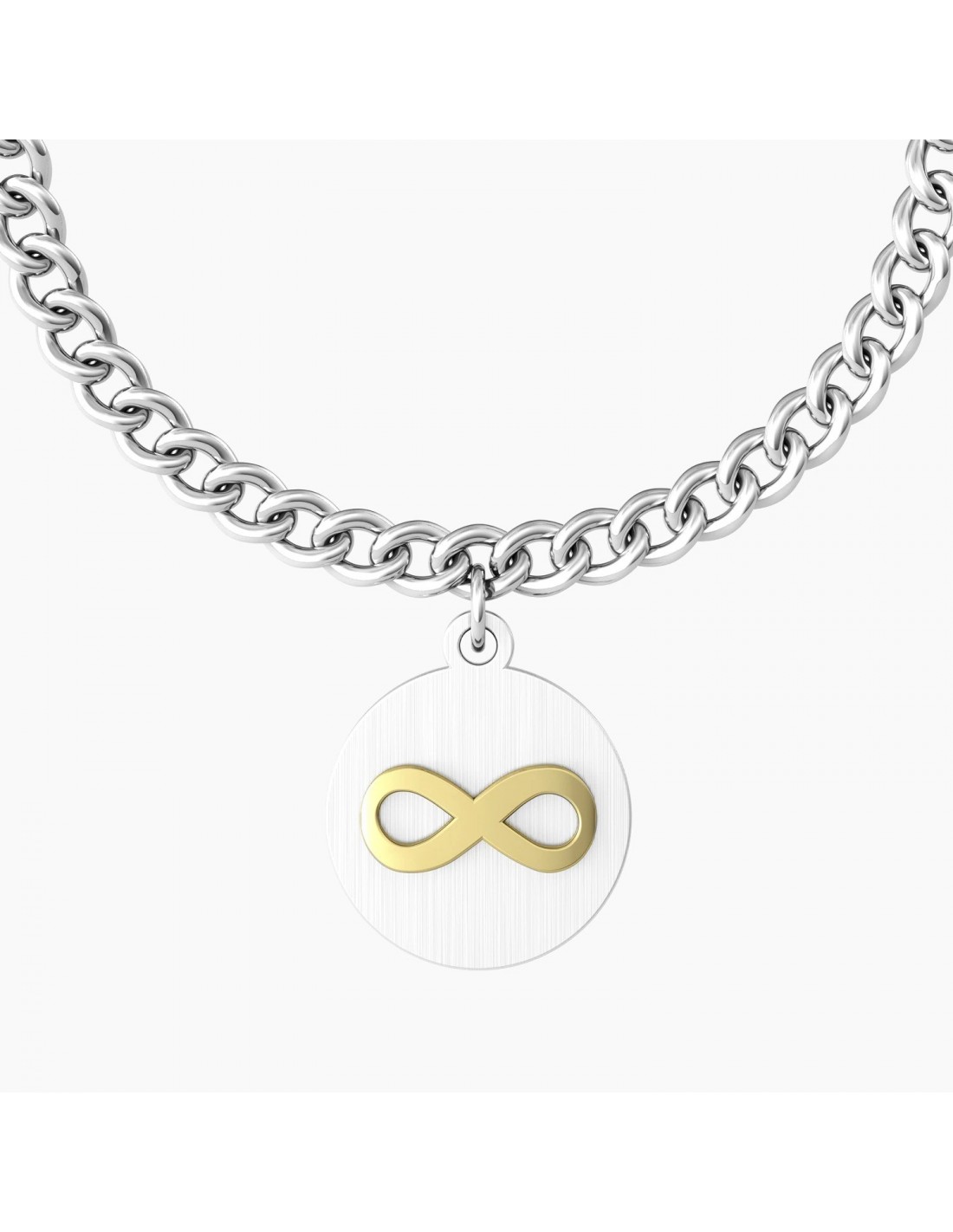 Ama e vivi intensamente ogni istante della tua vita. é questa la strada per essere infinitamente felice. Bracciale in acciaio con catena groumette "comfort fit" e ciondolo satinato tondo con infinito in rilievo color oro giallo.