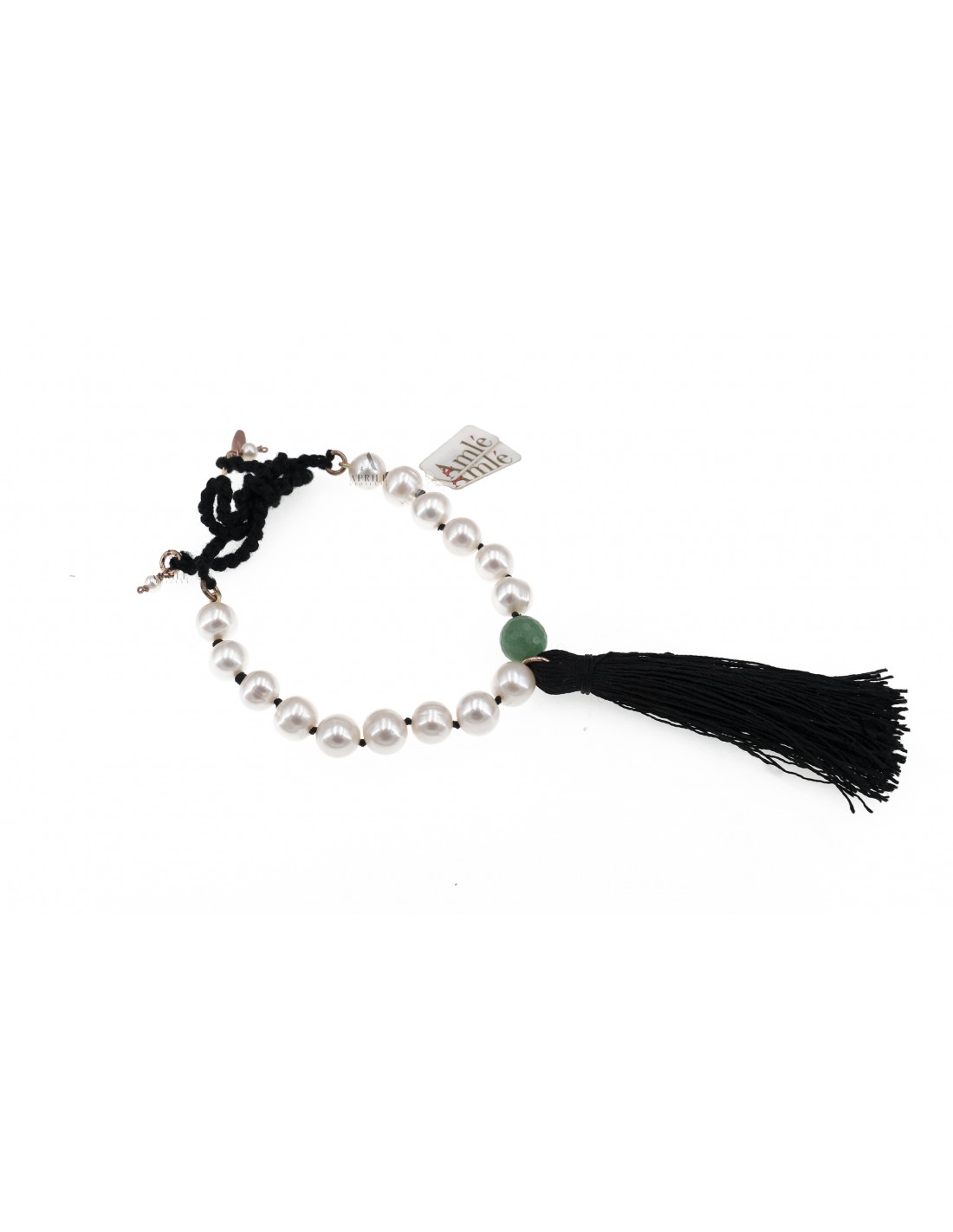 Bracciale perle prodotto da Amlè con agata e ciuffo cotone