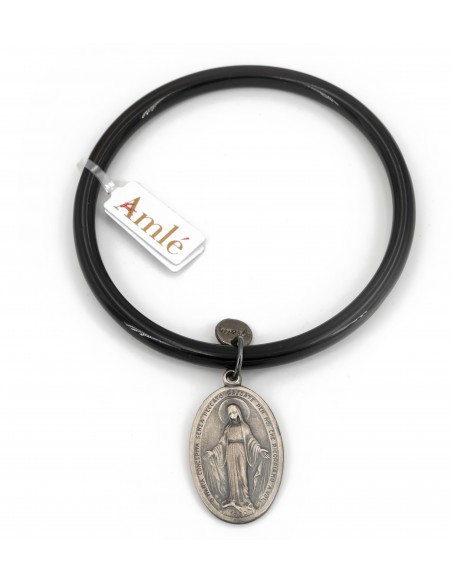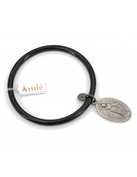 Bracciale Amlè in Corno Nero e Medaglietta Miracolosa in Argento Brunito