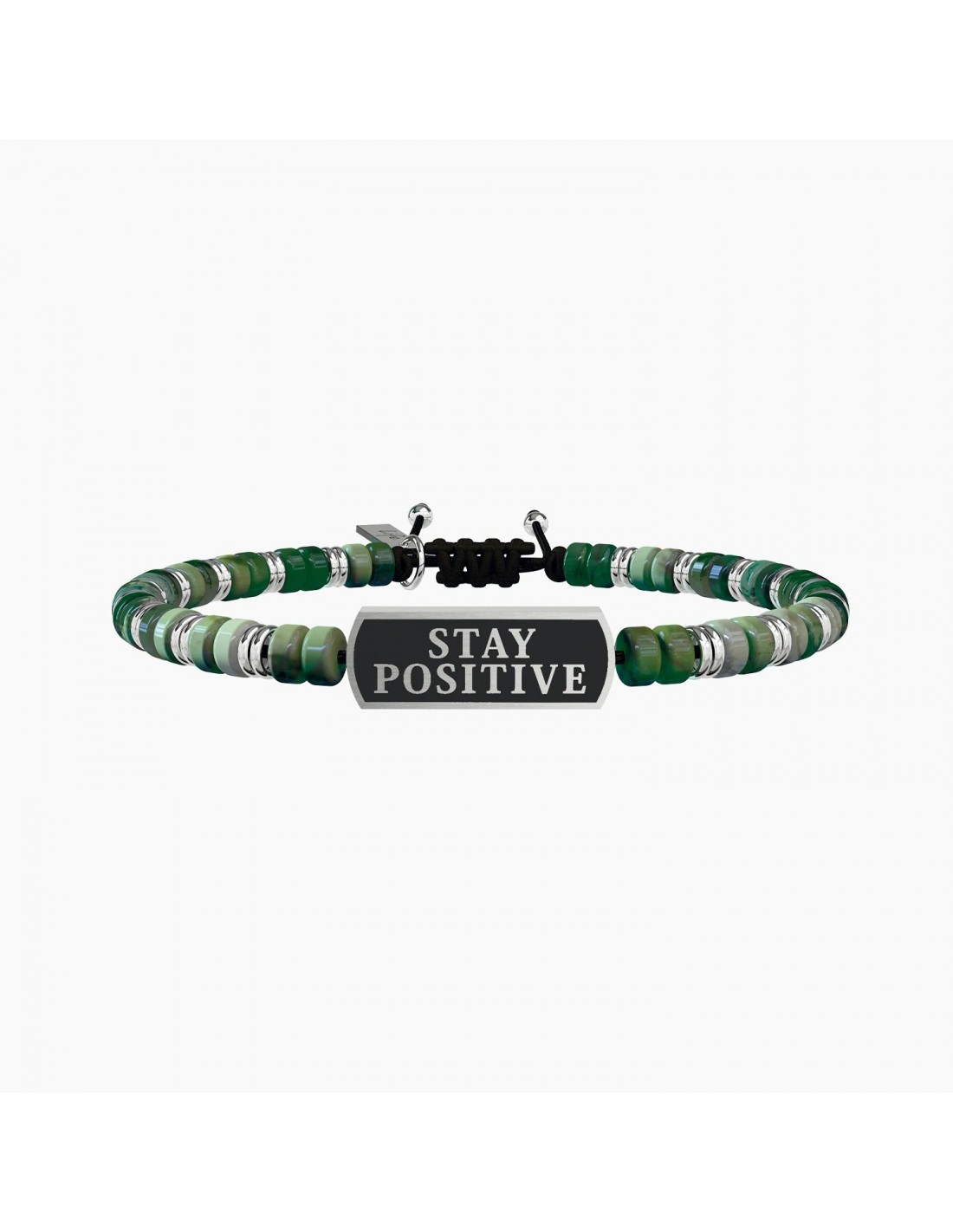 Ogni difficoltˆ pu˜ aiutare a crescere. Ogni salita, al ritorno  una discesa. Guarda il lato positivo delle cose e dietro ogni muro si aprirˆ una strada. Bracciale con cilindri in turchese e piastra rettangolare in acciaio di color nero.