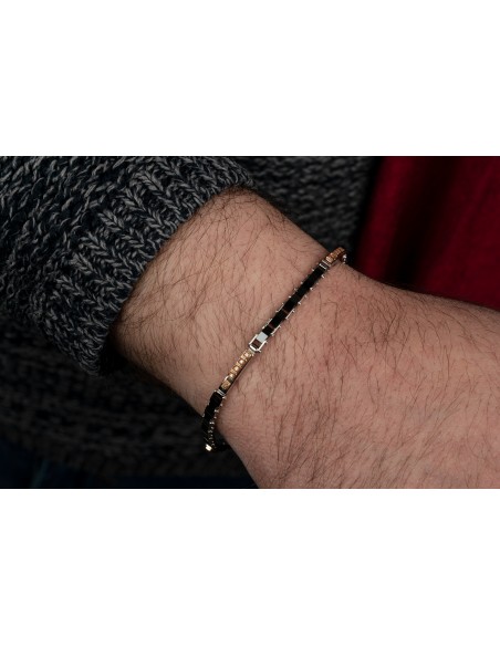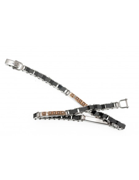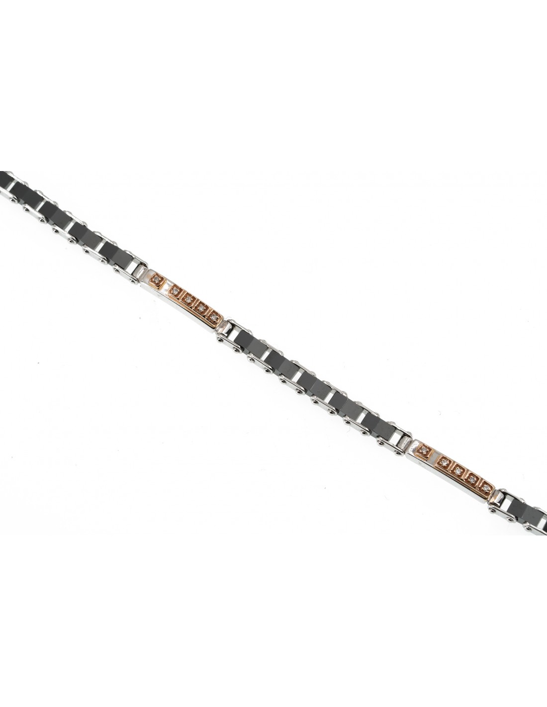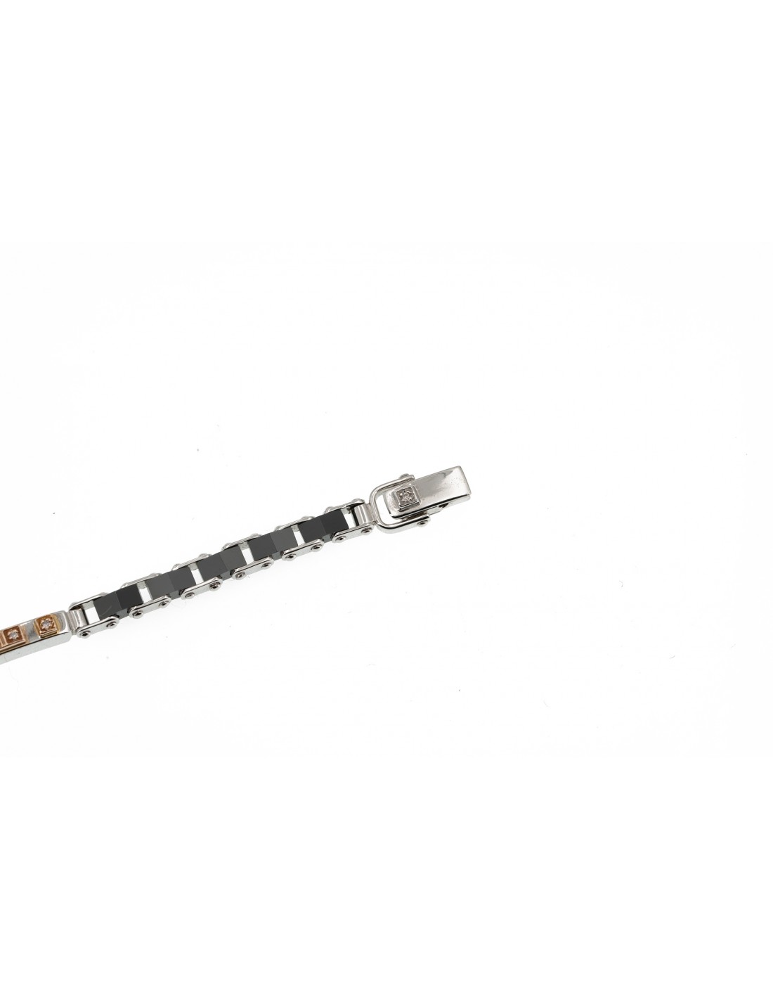 Bracciale uomo Arcadia in oro bianco ceramica e diamanti taglio brillante d. 0,08