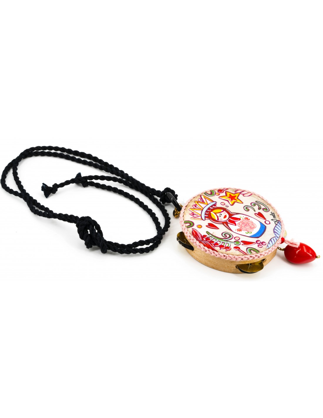 Era uno strumento esclusivamente maschile, come testimoniano i dipinti anche dei grandi pittori medievali come Giotto. Si pensa infatti che la sua forma circolare con i sonagli attorno sia stata scelta per la sua somiglianza col Sole, simbolo di Astarte, dea della fertilità. Per questo i pittori spesso lo rappresentavano con la corona di legno rosso e delle fiamme dipinte sopra.