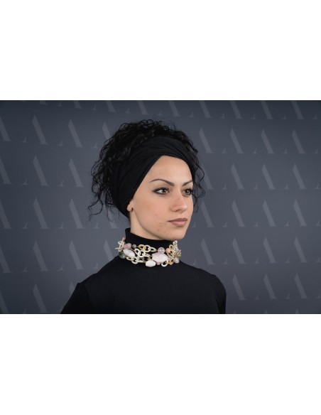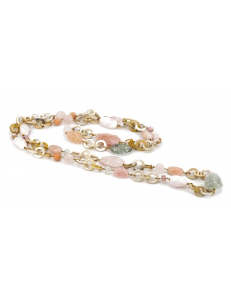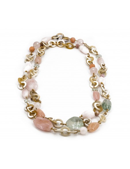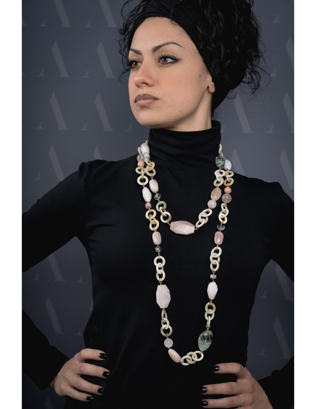Collana Amlè in Corno Sfumato e Pietre Naturali (Quarzi ). Lunghezza monogiro: 78cm