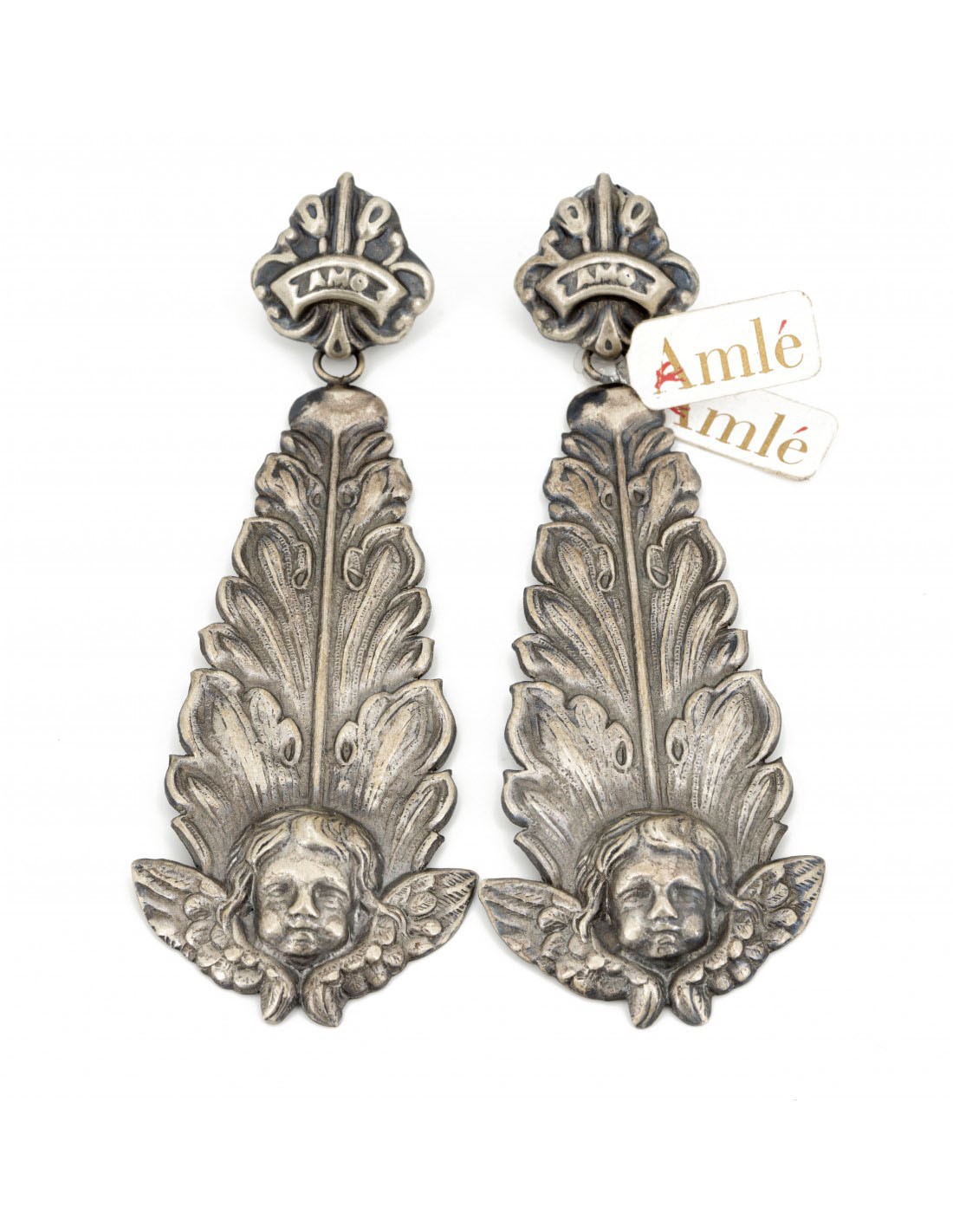 Orecchini Amlè Angeli in Argento (925) Satinato e Brunito con scritta Amo a Lobo