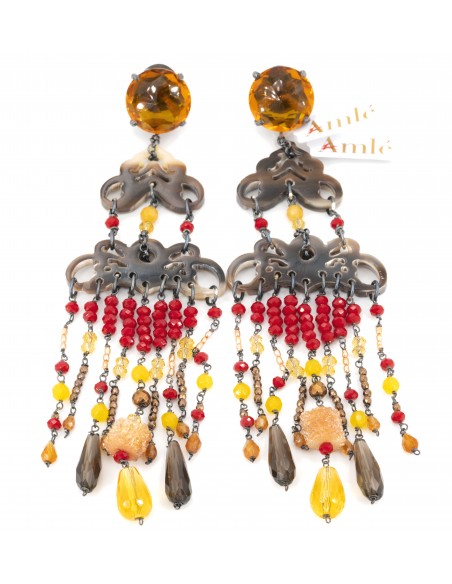 Orecchini Amlè in Argento Brunito, Corno e Pietre Naturali.