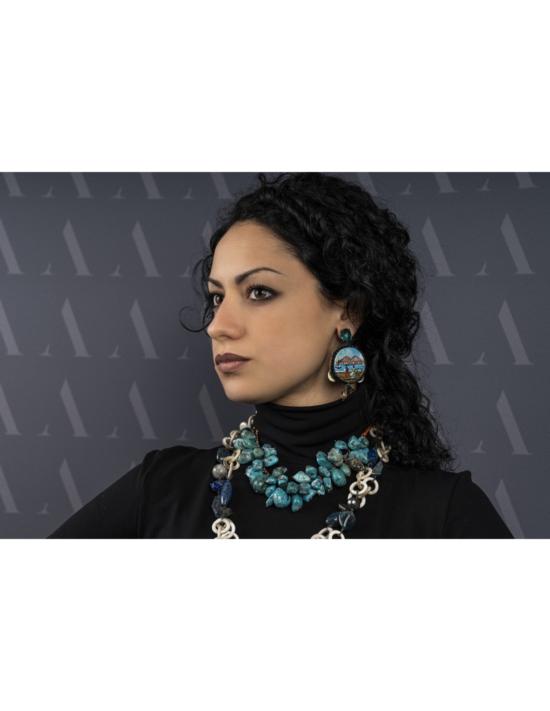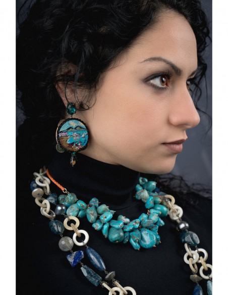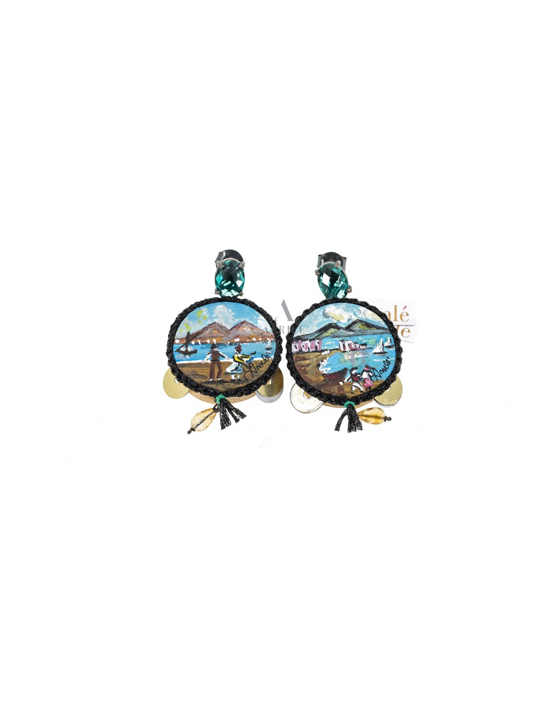 Orecchini Amlè tamburello dipinto a mano con pietre naturali