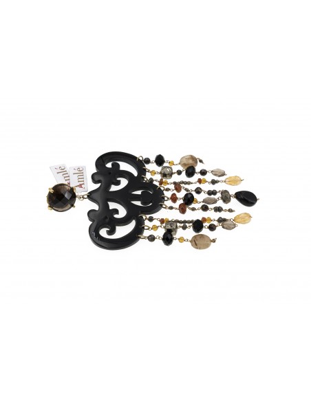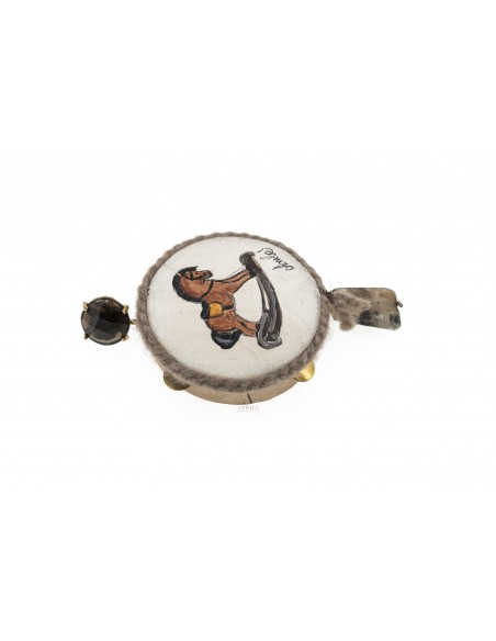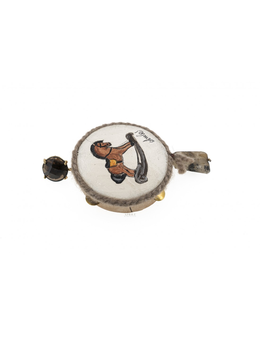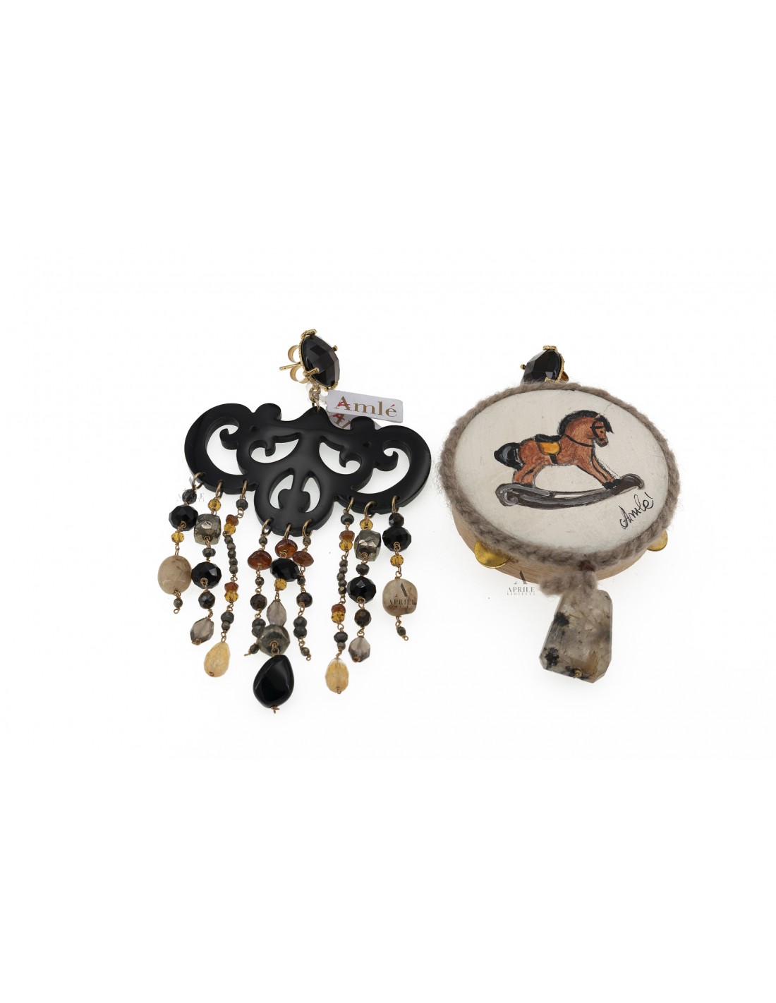 Orecchino prodotto da Amlè composto da corno fumè pietre naturali e tamburello dipnto a mano
